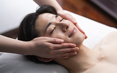 天然ヒト型セラミドを配合したクリームを贅沢に使用し、ゆっくりと肌を目覚めさせるような軽擦からリズムよくダイナミックなドレナージュへと進み、イキイキとした顔へと導いていきます。